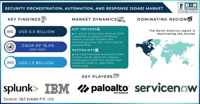 The Security Orchestration, Automation, and Response (SOAR) Market Size was valued at USD 1.5 Billion in 2023 and is expected to reach USD 5.5 Billion by 2032, growing at a CAGR of 15.5% over the forecast period 2024-2032.